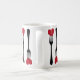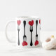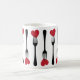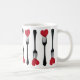 Coloque um garfo no meu coração e chame de feito. Um filete de garfos que cortam um coração faz um padrão através desta caneca. Este é o presente perfeito para dar a comida no Dia de os namorados ou em qualquer dia do ano. Disponível com produtos correspondentes.