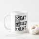 Coma a caneca engraçada do gym do elevador do sono