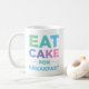 Coma o bolo para a caneca do pequeno almoço que caracteriza um design moderno, fresco, e colorido.