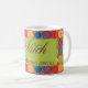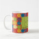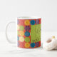 A caneca com design colorido do círculo e em um fundo verde é as palavras, "costura seu esforço afastado".