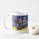 Cumprimentos caneca do cartão da grande-letra do vintage do mar Girt, New-jersey. O cartão publica-se em ambos os lados da caneca.