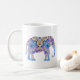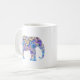 Este copo de café é imprimido com um design do elefante do caleidoscópio na lavanda, no azul, e no ouro. Excelente para o chocolate quente ou as outras bebidas, demasiado.