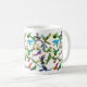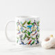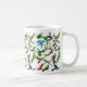 O design de muitos papagaios dos trabalhos artísticos originais do desenhista Carolyn McFann do estúdio de ronrom de dois gatos imprimiu em uma caneca de café da qualidade para proprietários e fãs do papagaio.
