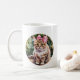 Esta é uma caneca com um gato adorável sentado nela. Tenha um dia feliz