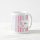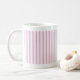 Estas canecas brancas generosa feitas sob medida da porcelana são decoradas com as listras bonitas e delicadas.