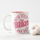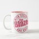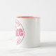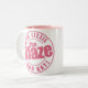 Permaneça bevs quentes do bebendo legal nesta caneca cor-de-rosa-em-branca que repping a chama com o podcast de Lizzie e de Kat!