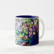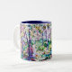 Design do vitral em cores ricas nesta caneca 15 0z. Se você olha pròxima, você verá que as árvores altas abrem para fora a um prado.