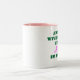 Caneca cor-de-rosa, branca e verde do cofee da esposa do exército. Esta caneca impressionante lê o "exército que as esposas a pôr no herói" na rotulação verde e cor-de-rosa. Presente fabuloso para uma esposa do exército!