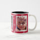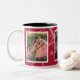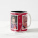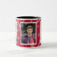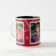 A caneca fotográfica com borda decorativa tem espaço para três das suas fotografias favoritas. Cada fotografia é emoldurada com branco e há um fundo temático estrela cadente que pode ser QUALQUER cor (basta personalizar/personalizar). Mostrado em vermelho com interior preto.