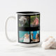12 fotos da caneca de café com "Nós te amamos pai!" escrita em branco sobre fundo preto. Escolha a opção personalizar para baixar suas fotos nos modelos. Em seguida, escolha personalizar para selecionar uma cor de fundo. O texto pode ser alterado, se desejado. 12