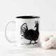 Uma galinha com o café da manhã? impressão de corte de madeira pela artista Elizabeth Rowland Mayor.