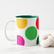 Design de Bolinhas de multicores Esta caneca possui bolinhas grandes e vibrantes em cores ousadas — amarela, vermelha, verde e rosa — em um fundo branco limpo. A jante interna é uma lágrima profunda, adicionando um contraste moderno. O padrão brincalhão lhe dá uma vibração alegre, jovem, perfeita para iluminar qualquer rotina matinal.