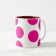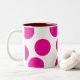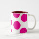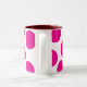 Design de Bolinhas Rosa-Quente Um design surpreendente com bolinhas rosa-quente super-dimensionadas espalhadas uniformemente sobre um fundo branco. O interior da caneca é um vermelho profundo, complementando o rosa-negrito no exterior. Este design é chic, atraente para os olhos, e perfeito para aqueles que amam peças vivas e fazeres.