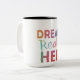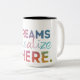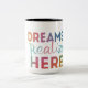 Uma caneca de na moda com "sonhos realizados aqui" em vaberient e multicolor