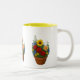 Design de Ilustração de Pote de Flor Essa caneca mostra uma ilustração encantadora de um pote de flor cheio de flores coloridas como girassóis, margaridas e muito mais. O fundo permanece branco, mantendo o foco no trabalho de arte floral detalhado. A borda interna amarela acrescenta um toque ensolarado, fazer este presente adorável para amantes de jardim ou qualquer pessoa que goste de arte inspirada na natureza.