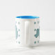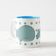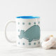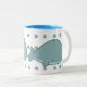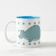Uma caneca que caracteriza um design bonito da baleia. Uma outra baleia aparece no outro lado da caneca.