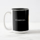 Um grande dois tom, 15oz. agrida a caracterização da arte original de Elizabeth Ansley-Fisona de um carro clássico velho oxidado e do texto "clássico." qual o diz todo.