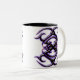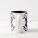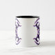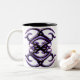 Um preto, um vermelho, e um design tribal roxo azulado com um símbolo da infinidade no centro de um design tribal da letra X.