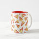 Este teste padrão pizza-temático moderno do divertimento é apenas a coisa para todo o amante dos pepperoni. Teste padrão sem emenda desenhado mão das fatias de queijo da pizza de pepperoni impressas na caneca branca do dois-tom com um interior do vermelho rico.