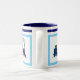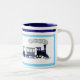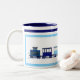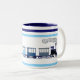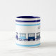 O trem bonito das crianças no preto e nos azuis estica através desta caneca branca. Personalize adicionando todo o texto que você quiser. Faz uma caneca agradável do presente para encher-se com os doces ou os presentes pequenos.