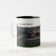 Uma caneca de café com uma imagem de seu celeiro favorito, a pensão do fanfarrão