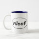 Caneca com Woof dentro de um euro- círculo. Grande presente para algum amante do cão.