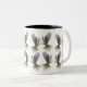 Um papagaio australiano do cockatiel voa nesta caneca de café do tom da qualidade dois para amantes e proprietários do pássaro. Design por Carolyn McFann do estúdio de ronrom de dois gatos.