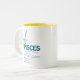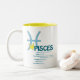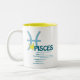 Esta caneca dos traços dos peixes faz um presente de aniversário perfeito para todos os peixes. Os peixes são o duodécimo sinal do zodíaco e incluem todo o nascer dos indivíduos desde o 19 de fevereiro - 20 de março. O símbolo dos peixes é o peixe. Os traços da personalidade dos peixes são imaginativos, compassivo, altruístas, intuitivos e secretos. Os peixes Birthstone são água-marinha e os peixes que ordenam o planeta são Netuno