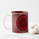 Um fractal circular ornamentado de vermelho profundo e prata, como uma coroa cheia de joias.