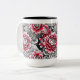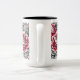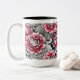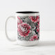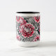 Caneca branca impressa com rosas cor-de-rosa de arte digital com interior preto.