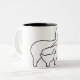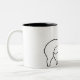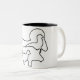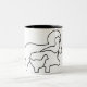 Caneca com desenhos das silhuetas metálicas sobrepostos.