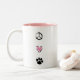 Caneca - parte dianteira: Mais meninos eu encontro o mais amor de I meu cão. Parte traseira: Paz, amor e patas.