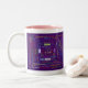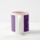 Os nomes do deus durante todo da bíblia imprimiram tudo em torno da caneca em um fundo bonito da cor do roxo real com todos os nomes em tipos e em tamanhos diferentes do impressão e cores com rosa dentro do copo. Bonito