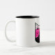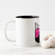 Ilustração cor-de-rosa, branca, e do preto olá! da coruja na caneca branca com preto para dentro.