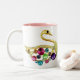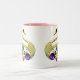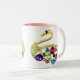 Cor-de-rosa na moda e o branco dois tonificam a caneca com os dois bonitos, pavões digitais coloridos lunáticos e bonitos do ouro das jóias. Um presente à moda, elegante, chique, feminino da forma para mulheres, adolescentes e miúdos e qualquer um que ama pavões. Note por favor: Todos os produtos no Web site de Zazzle têm imagens impressas do plano. Se você precisa algum auxílio que personaliza seu produto me contacta por favor através de minha loja e eu estarei feliz ajudar.