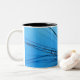 Uma imagem azul bonita, brilhante de gotas de água em uma semente do dente-de-leão intitulou da "elogios senhora Canto Azul" acima esta caneca de café.