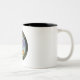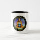 Copo branco clássico e interior preto com o templo do logotipo da deusa.