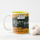 Uma caneca do 2-Tom que caracteriza o design do poster para a produção de Stageworks Toronto de "Urinetown".