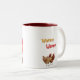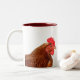 Dois tom "Wakey! Caneca pequeno almoço de Wakey do" com design das palavras e de duas galinhas marrons. Da escala do presente do monte do solar.