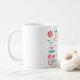 " Eu amo caneca de Maui" com ilustrações do sol, cruzador da praia, peixe, âncora, arco-íris, prancha, estrela do mar, ondas, chapéu de maui e com a atmosfera "ALOHA" de Maui, Havaí.