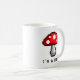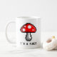 Uma caneca com um design vermelho do cogumelo do pixel em cada lado. O texto lê-me "é fungos" embora pode ser mudado.