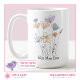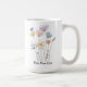 Mostre a sua mãe o quanto ela significa para você no Dia de as mães ou em qualquer dia com esta caneca personalizável que apresenta uma ilustração aquática de flores silvestres coloridas, pássaros azuis bonitos, e texto personalizável que diz, "Melhor Mãe Nunca." A paleta de cores amarelo, azul e lavanda suave adiciona um toque feminino, enquanto o texto personalizável permite adicionar um nome ou sua própria mensagem. Quer você esteja dando isto como presente para o Dia das Mães, aniversário, ou qualquer ocasião especial, esta caneca é a maneira perfeita de mostrar à mãe seu amor e apreço.