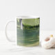 Esta caneca de café é perfeita para o amante do golfe. Caracteriza uma fotografia de um campo de golfe em um lado. Com ela é a grama verde luxúria e a bandeira branca no furo isto é uma foto notável. No outro lado da caneca tem um calendário 2011.