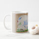 Uma caneca do conto de fadas com toadstools, borboletas e flores. Há um ouriço na grama e em um gato preto bonito na árvore. Esta imagem é tomada de uma de minhas pinturas originais que foi pintada na madeira desigual, você pode considerar o woodgrain e os brushstrokes. Você pode personalizá-la com um nome ou um "melhor professor" etc.