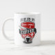 Jumbo Alguns dias, uma xícara de joe de tamanho normal simplesmente não vai funcionar. Quando precisar de uma dose extra de cafeína, pegue a sua caneca de café extragrande de Zazzle. Vai acomodar um cheio de 20 onças de Venti. Perfeito para sopa, cereal, sorvete ou chili também! Esta caneca gigante apresenta uma alça em forma de C para um corte confortável. Dimensões: Altura: 4,5" Diâmetro: 3,9" Capacidade: 20 onças de micro-ondas e lava-louças Forte, de cerâmica Cumprir ou exceder os requisitos do FDA para o Designer de Segurança de comidas e bebidas Dica: Para garantir o impressão de alta qualidade, note que a área de design personalizável deste produto mede 4" alto x 10,5" de largura