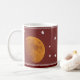 lua e estrelas, sonhos dourados. Todos disparam em mais alto do que você quer e você alcançará certamente seu objetivo! o texto no outro lado da caneca diz "sonhos dourados obtidos? tiro para a lua"