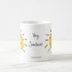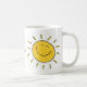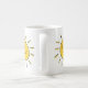 Acorde à cara ensolarada, feliz com seu café ou ao chá. O texto na caneca diz, "Hey, luz do sol!"