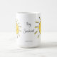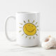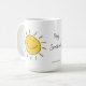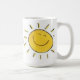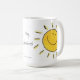 Acorde à cara ensolarada, feliz com seu café ou ao chá. O texto na caneca diz, "Hey, luz do sol!"
