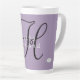 Lavanda de caneca de café roxa com seu nome em branco e inicial em preto. As cores podem ser alteradas escolhendo as opções personalizar e personalizar. Design HAMbyWhiteGlove aka HAMbWG.