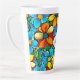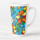 Esta pequena caneca de latte apresenta um vibrante padrão floral que explode em cores - amarelos ensolarados, laranjas quentes, vermelhos profundos e azuis refrescantes sobre um fundo azul rico. A silhueta alta e afunilada destaca a obra de arte de forma linda, dando ao design um visual refinado e sofisticado, estilo café. No centro, uma etiqueta oval elegante com a palavra BLOOM adiciona um toque de inspiração, celebrando o crescimento, a positividade e a alegria cotidiana. O formato da caneca a torna perfeita para lattes, cappuccinos, chá ou qualquer bebida quente apreciada lentamente e com intenção.